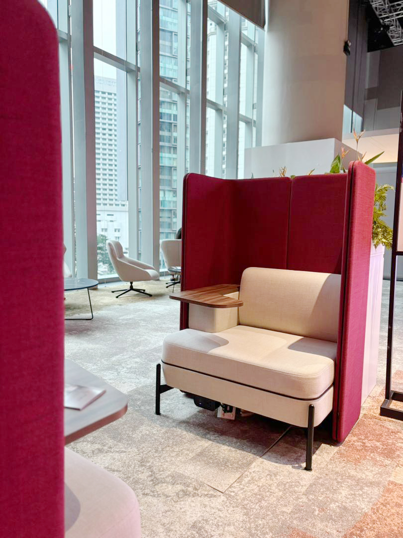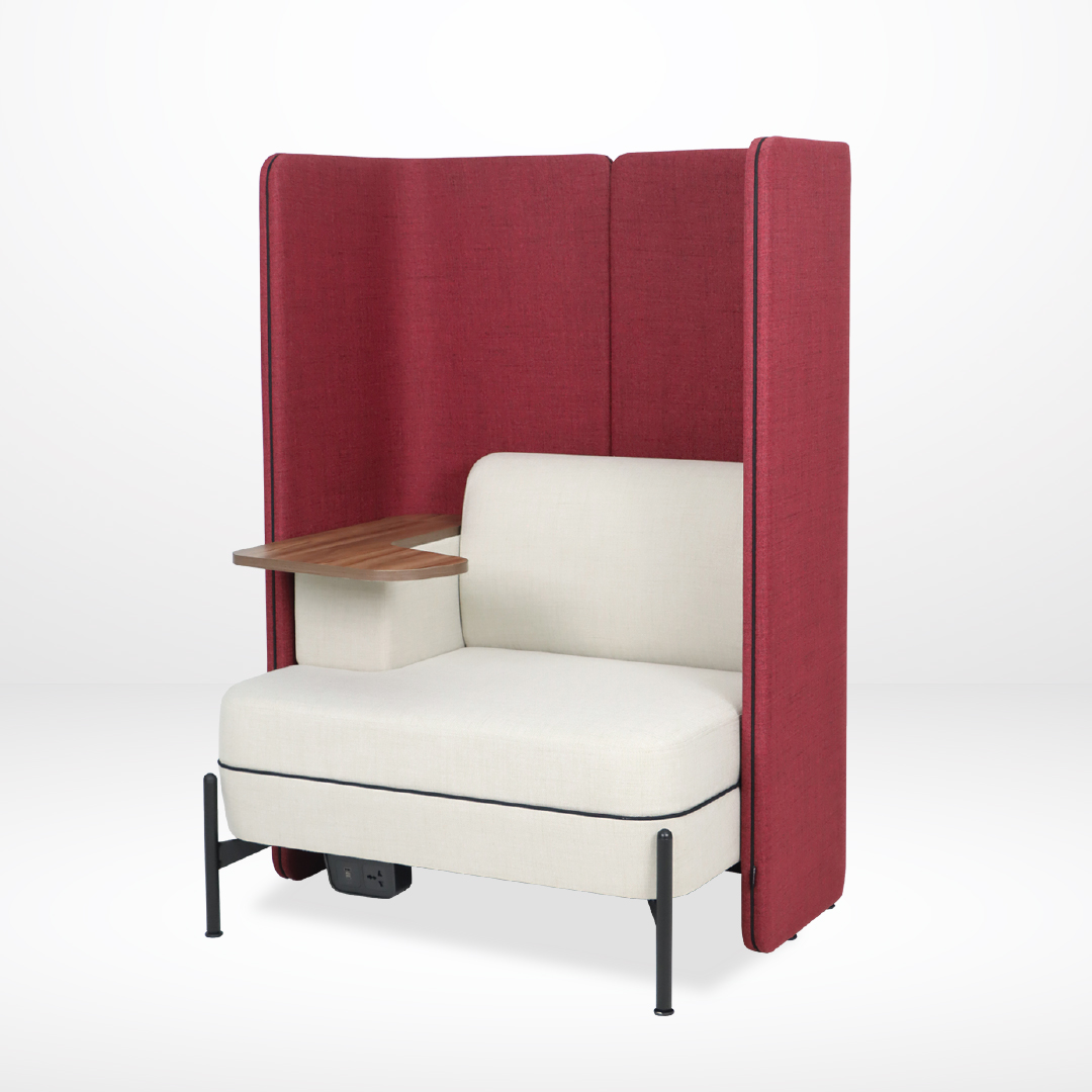 The Combi Sofa is a smart combination of comfort and function. Designed as a single seater featuring a sturdy back panel and integrated flip-out table, it's the perfect companion for focused work or private moments of leisure. The elegant design combines ergonomic support and space-saving ingenuity, offering you your own comfortable haven that seamlessly transforms from seating to workstation. Whether you're catching up on emails, enjoying a snack or simply relaxing with a book, this sofa provides versatility without compromising on style or comfort.